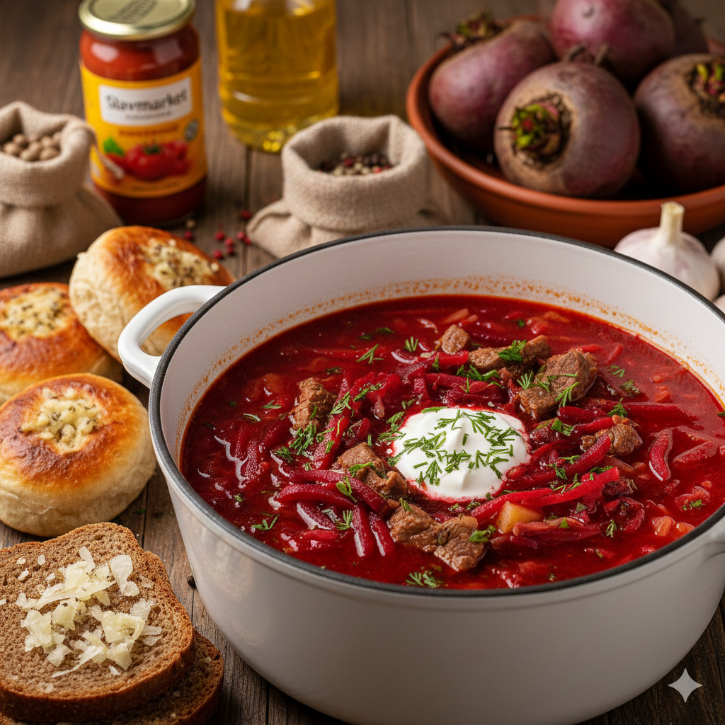 Cette recette est idéale pour obtenir un borchtch d'un rouge rubis profond avec une saveur riche. Le secret réside dans la cuisson de la betterave au four, ce qui concentre ses pigments naturels.